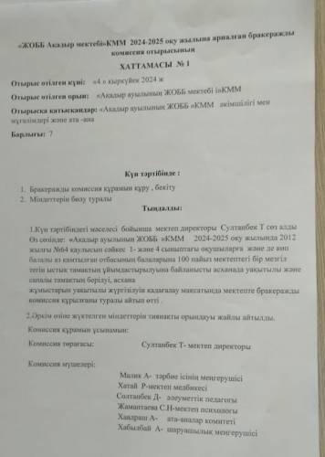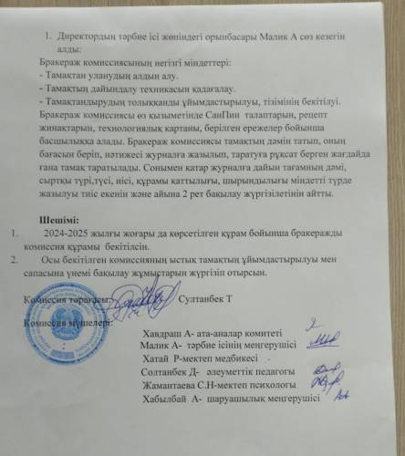 Протокол заседания бракеражной комиссии на 2024-2025 учебный год №1