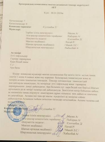 Брокераждық комиссиясы мектеп мектеп асханасын тексеру жүргізудегі АКТ