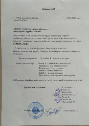 "О мониторинге, контроле качества готового питания. Приказ № 35