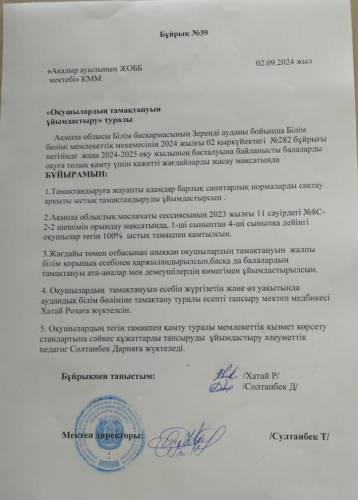 О "организации питания школьников". Приказ № 39