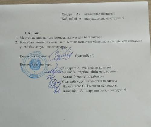 Бракеражды комиссия отырысының хаттамасы №2
