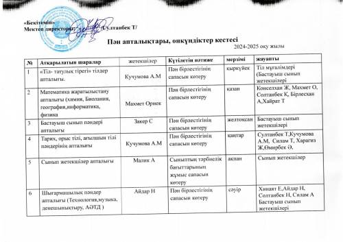 Пән апталықтары, онкүндіктер кестесі 2024-2025