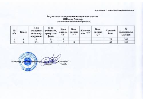 4 және 9 сынып оқушыларының тестілеу нәтижесі