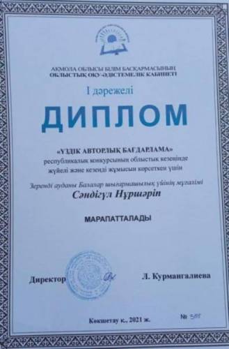 "БЖШО" жанындағы "ЖОББ Ақадыр мектебі" КММ филиалы "Бала би шешендік өнер үйірмесі" 2013 жылдан бері жұмыс істейді. Әрбір үйірмеге арналып бағдарлама құрылуы міндет. Осы ретте мамыр айында аудандық авторлық бағдарламалар іріктеуі өтіп, Нұршәріп Сәндігүлдің "Бала би шешендік өнер үйірмесінің авторлық бағдарламасы" 1-орынға ие болды. Ал облыстық кезеңге Зеренді ауданының атынан қатысып, тағы да 1-дәрежелі диплом иегері атанып, ауданымыздың мәртебесін көтерді. Алдағы уақытта Ақмола облысы білім басқармасы атынан Республикалық кезеңде өз жұмысын қорғайтын болады. Әріптесімізге сәттілік, жеңіс тілейміз!